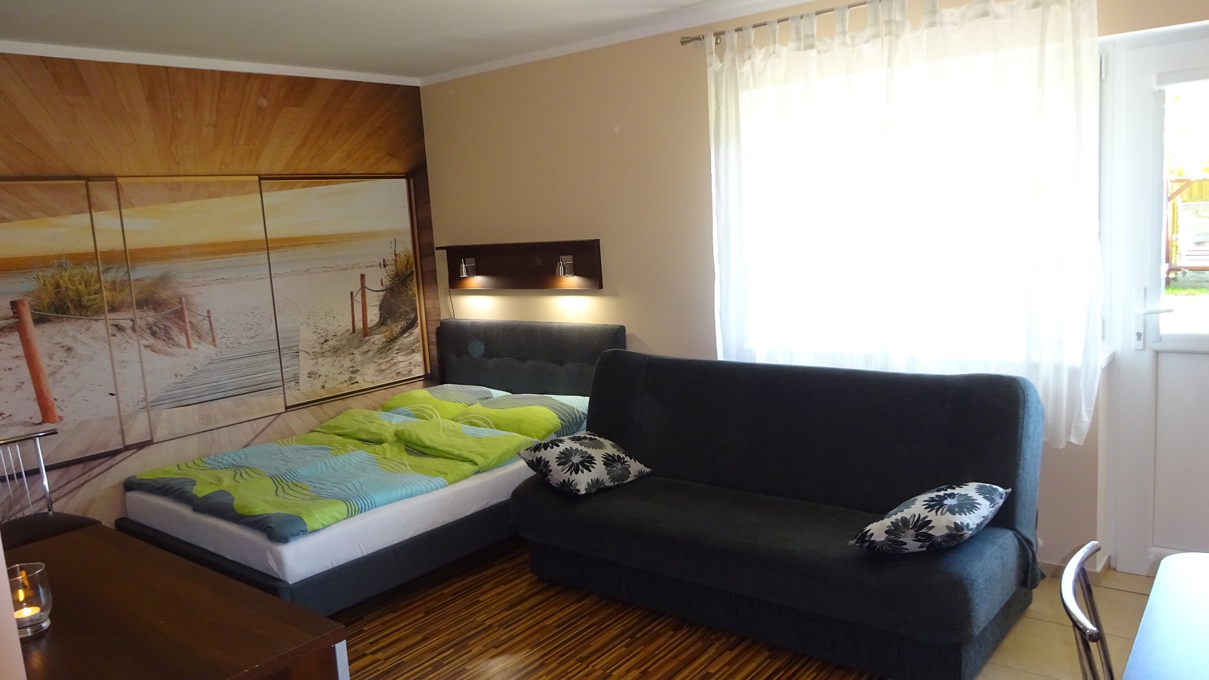 Apartament na parterze (ok. 25m2) dla max. 4 os. z bezpośrednim wyjściem do ogrodu.