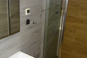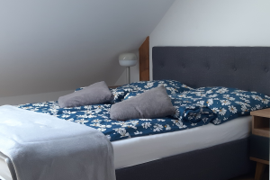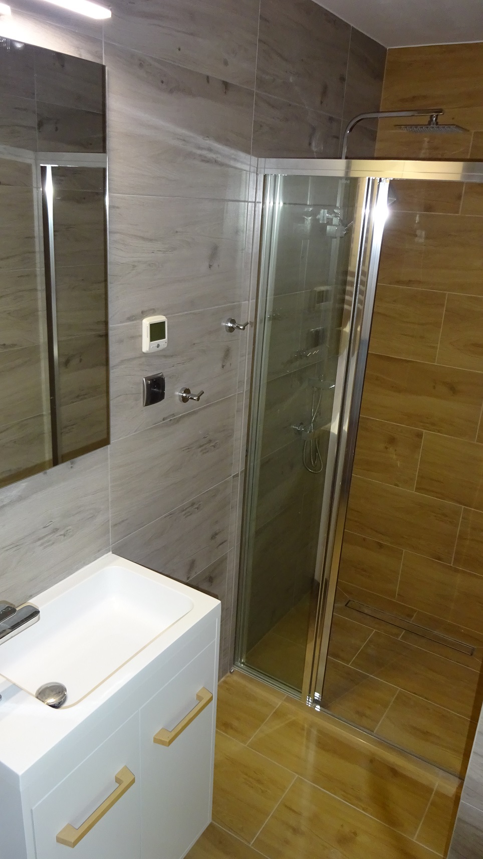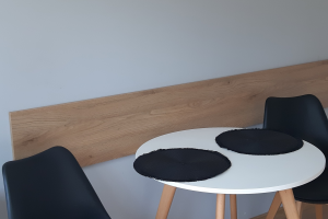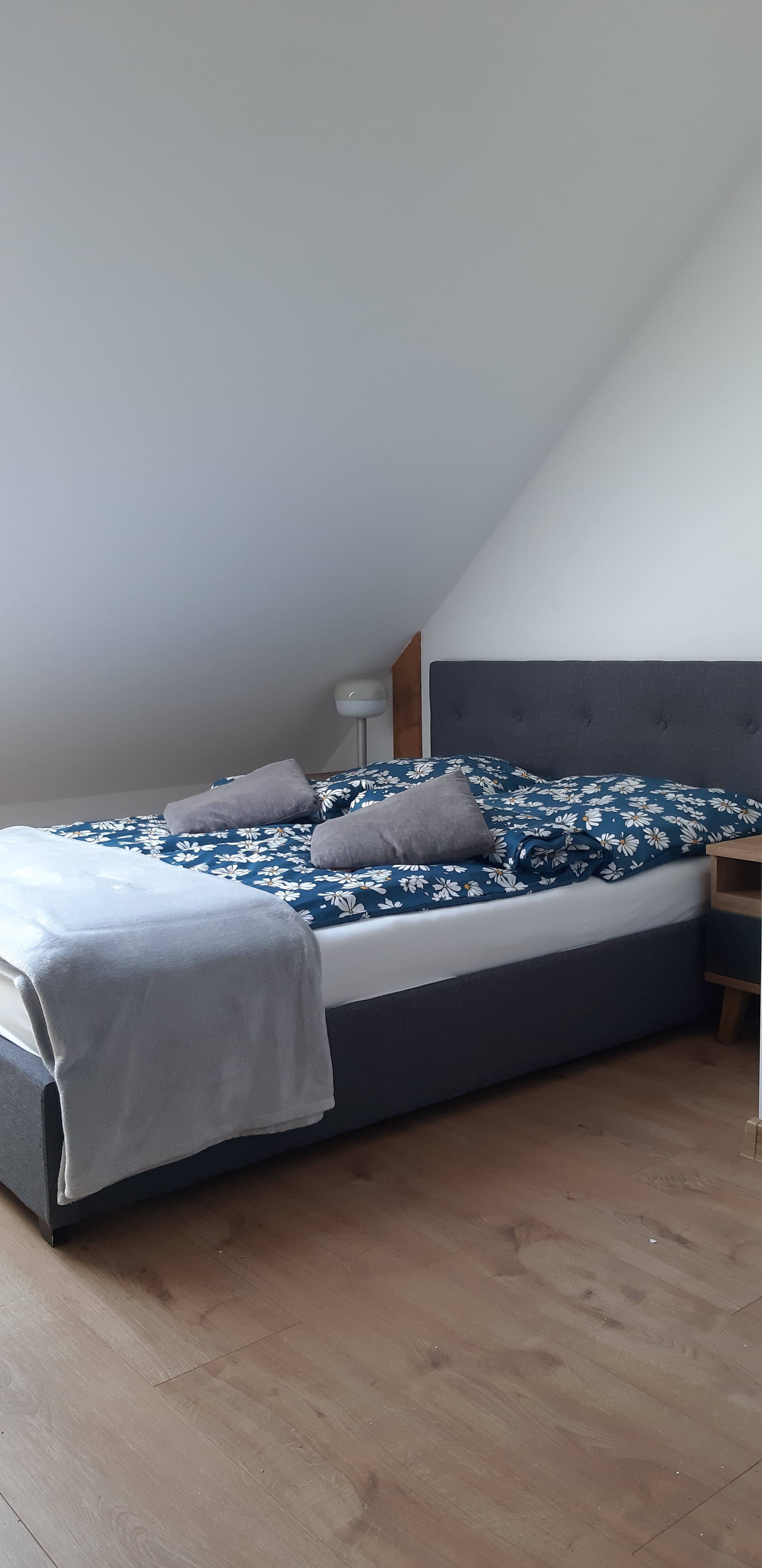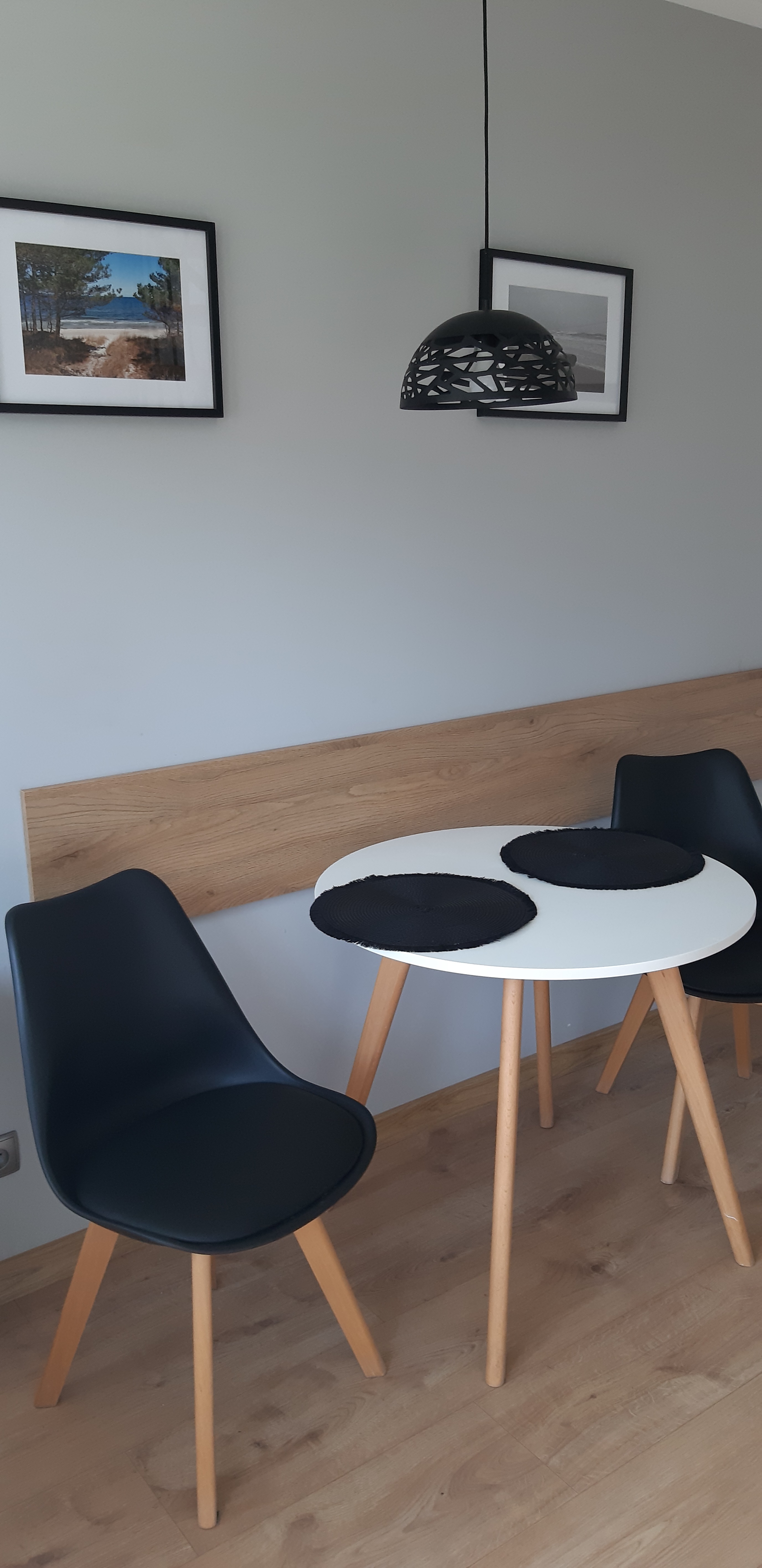 Nowy apartament 2 poziomowy (ok. 30m2) dla max. 2 os deluxe. W apartamencie: na 1-wszym poziomie: aneks kuchenny (płyta indukcyjna, mikrofala, lodówka, czajnik, zestaw naczyń), łazienka z podgrzewaną podłogą (wc, prysznic, umywalka), na piętrze sypialnia z łóżkiem małżeńskim, TV-32 cale. Przed apartamentem na tarasiku stolik i 2 krzesełka.