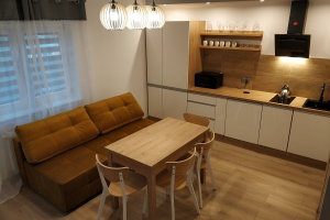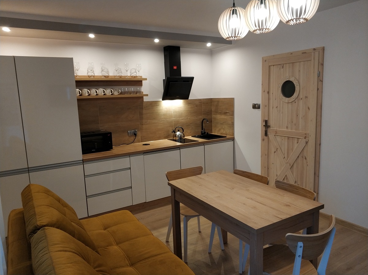 Każdy z naszych apartamentów posiada osobne, bezpośrednie wejście z podwórka/ogrodu i wyposażony jest: w aneks kuchenny: płyta indukcyjna, lodówka, mikrofala, zmywarkę (ap. nr 2,6), łazienkę oraz smart TV 32/39 cali. W apartamentach deluxe usytuowanych na I piętrze dodatkowo osobna sypialnia na piętrze, podgrzewana podłoga w łazienkach, przed wejściem do apartamentów na tarasie stolik i krzesełka.